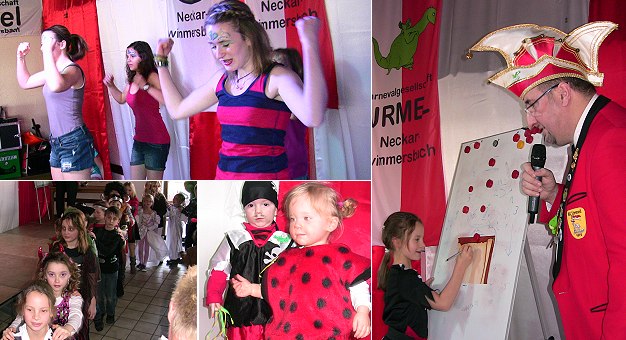 Am Nachmittag feierten die "Urmel" im bunt geschmückten SV-Vereinsheim mit jungen und junggebliebenen Närrinnen und Narren Kinderfastnacht. Nach der Begrüßung der Gäste durch Urmel-Präsident Joachim Schwab führte Sitzungspräsident Bernhard Walter durch das Programm. Gemeinsam mit Marilena Messel und Svenia Steck lud Walter die anwesenden Cowboys, Indianer, Käfer, Piraten und Prinzessinnen zum Mitspielen und Mittanzen ein. Für ihre Teilnahme wurden die jungen Gäste mit kleinen Präsenten belohnt.