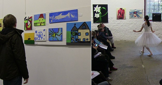 Ausstellung wurde mit Musik und Tanz eröffnet (Fotos: Hubert Richter)(hr) Kunst von Schülerinnen und Schülern ist seit gestern in der Galerie Artgerecht in Eberbach zu sehen.