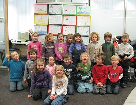 Bilder zum Thema Paradies verschönern die Volksbank (Foto: privat)(bro) (sch) Kunterbunte Bilder zum Thema „mein Paradies“ malten die baldigen Schulanfänger des katholischen Kindergartens St. Maria. Besucher der Volksbank Neckartal Hauptgeschäftsstelle in Eberbach können die Bilder seit Dienstag, 14. Februar, betrachten.