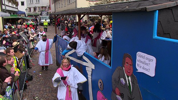 Fast 100 Nummern hat Zugmarschall Richard Rucktäschel zusammengestellt. Damit ist der Hirschhorner Umzug wieder das größte närrische Freiluftevent der Region. Das Motto in diesem Jahr war eine klare Ansage für alle Internetfans: "Man kann mailen, posten oder twittern - Fastnacht vom Feinsten hier bei den Rittern".