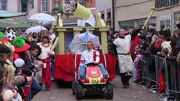 Fast 100 Nummern hat Zugmarschall Richard Rucktäschel zusammengestellt. Damit ist der Hirschhorner Umzug wieder das größte närrische Freiluftevent der Region. Das Motto in diesem Jahr war eine klare Ansage für alle Internetfans: "Man kann mailen, posten oder twittern - Fastnacht vom Feinsten hier bei den Rittern".