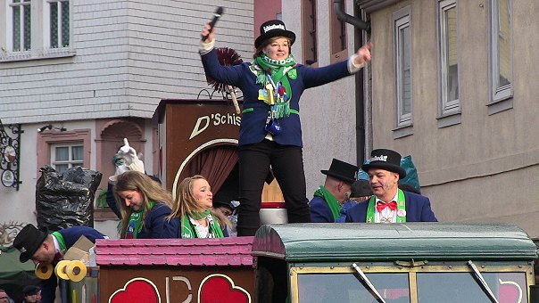 Los ging es um 13.59 Uhr am Brückenkopf auf der Ersheimer Seite. Über die Schleusenbrücke schlängelte sich die bunte Narrenschar durch die Hauptstraße zum Freien Platz, wo der Umzug von Doris Heckmann und Hans-Jürgen Waibel kommentiert wurde. Anders als bisher ging es dann in die Neckarsteinacher Straße weiter, wo sich der Zug ab der Einmündung der Bahnhofstraße auflöste.