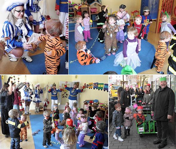 Ein dreifach kräftiges Hoja (Fotos: privat)(bro) (en) Dass auch Krippenkinder zu feiern wissen, zeigte sich am Rosenmontag sowohl im „SpatzenNest am Rosenturm“ als auch im „SpatzenNest im Badehaus“. Die KG Kuckuck besucht diese im jährlichen Wechsel und überzeugt sich vor Ort vom närrischen Treiben. Dazu gesellte sich noch Hanna Scherner von der "Roten Sternchen-Garde" des Carneval Clubs Zigeunerio aus Schwarzach.