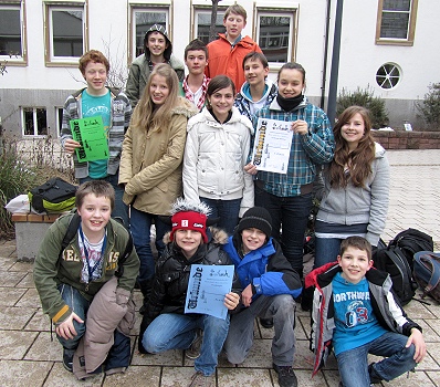 Mädchenmannschaft wurde souveräner Kreismeister im Schulschach Die drei angetretenen Schülermannschaften des Eberbach Hohenstaufen-Gymnasiums nach dem erfolgreich verlaufenen Turnier in Heidelberg. In der Mitte die siegreichen HSG-Mädchen. (Foto: privat)(bro) (pm) Auch die zweite Runde der Schulschachkreismeisterschaften wurde Ende Februar wieder erfolgreich von der Schach-AG des Hohenstaufen-Gymnasiums unter der Leitung von Oberstudienrat Bernhard Schell besucht. Besonders erwähnenswert ist der souveräne erste Platz der Mädchenmannschaft, die sich damit für die Nordbadischen Meisterschaften im März in Karlsruhe qualifizierte. Die Mädchen spielten in der Besetzung Melissa Körlin, Jessica Braun, Kira Robens und Nadja Augsburger. Auch die beiden anderen HSG-Mannschaften schlugen sich mit einem vierten und siebten Platz achtbar.