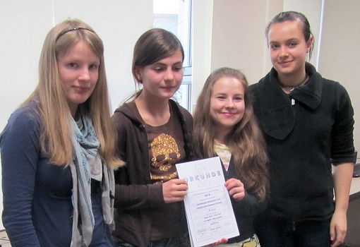 Dritter Platz bei den Nordbadischen Meisterschaften V.l.: Melissa Körlin, Kira Robens, Jessica Braun und Nadja Augsburger. (Foto: privat).(bro) (pm) Ohne große Erwartungen fuhren die Mädchen der Schach-AG unter der Leitung von Oberstudienrat Bernhard Schell Anfang März zu den Nordbadischen Meisterschaften nach Karlsruhe. Umso überraschter waren die HSG-Schachmädchen, dass nach einem fünfstündigen, kräftezehrenden Turnier der geteilte dritte Platz erspielt wurde. Dieser Platz ist ein sehr guter Erfolg für die neu geformte Mannschaft, die nun Ende März bei den badischen Meisterschaften versucht, eine ähnliche Leistung zu erbringen.