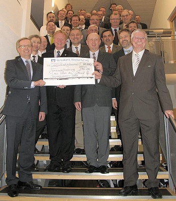 Aus der Zusammenarbeit mit dem Gewinnsparverein Südwest konnte Vorstandsvorsitzender Ekkehard Saueressig in diesem Rahmen einen Scheck in Höhe von 66.000 Euro übergeben und freute sich, dass die Spenden z.B. zur Renovierung oder Erweiterung von Spielplätzen oder für die Seniorenarbeit eingesetzt werden. Das Jahr 2012 stehe laut Saueressig ganz im Zeichen des von der UN ausgerufenen internationalen Jahres der Genossenschaften. In seiner Begrüßung informierte er die Gemeindeoberhäupter deshalb u.a. über die neu gegründete Energie und Umwelt eG, an der auch die Volksbank Neckartal beteiligt ist. Im Sinne einer weiterhin guten und konstruktiven Zusammenarbeit klang der Abend in gemütlicher Runde und bei interessanten Gesprächen aus.