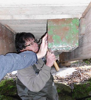 Nistkästen für die scheuen Vögel (Foto: privat)(hr) (balo) Seit 1992 wurden an der Itter, dem Reisenbach, dem Höllbach, dem Gammelsbach, dem Holderbach und dem Pleutersbach unter Brücken vom NABU Eberbach rund 40 Nistkästen für die Wasseramsel aufgehängt.