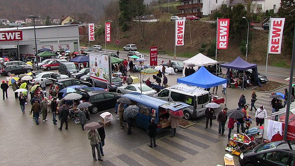 Mit Ostermarkt und Sonntagsshopping in die Bärlauchzeit Flohmarkt bei regnerischem Wetter heute Nachmittag an der Güterbahnhofstraße. (Foto: Hubert Richter)Mehr Bilder (Klicken zum Vergrößern):