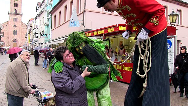 Drache und Dompteur vom Stelzentheater Circolo. (Foto: Hubert Richter)