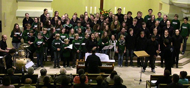 Die jungen Sängerinnen und Sänger ernteten tosenden Beifall, und den Schluss des Abends gestalteten beide Chöre gemeinsam, unter anderem mit dem bekannten "Joyful Joyful" aus dem Film "Sister Act 2" mit Motiven aus Beethovens Sinfonie Nr. 9.