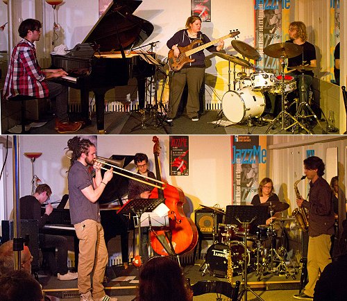 Wahl der Jury fiel auf Trio aus Rheinland-Pfalz - Landeswettbewerb kommt nach Eberbach Zwei Bands im Club 55: "Jatzt"! (oben) darf bei "Enjoy Jazz" auftreten. Unten "Butterbrot" beim Konzert gestern Abend. (Fotos: Wörner)(tw) Mit dem Auftritt des Quintetts "Butterbrot" aus Berlin gingen gestern Abend im Club 55 am Neuen Markt die Eberbacher Jazztage 2012 ("JazzMe") zu Ende.
