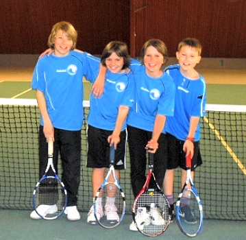 U12er Junioren erfolgreich Die siegreichen Junioren U12: Kevin Juschka, Niklas Winscher, Max Wuscher, Frederik Emmerich (v.l.), nicht auf dem Bild: Marc Sigmund. (Foto: privat)(bro) (sch) Mit einem ersten Tabellenplatz und damit als Gruppensieger schlossen die Junioren U12 des Tennisclubs Blau-Weiß die Winterhallenrunde in der ersten Bezirksklasse ab.