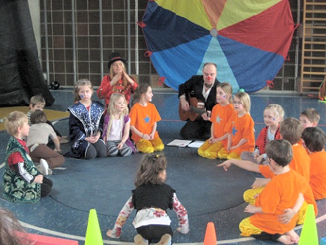Kindergartenkinder und Erstklässler schlüpften in die Rolle von Artisten (Foto: privat)(bro) (hn) Mut, Kraft, Geschicklichkeit und Witz bewiesen Ende Februar die vier- bis siebenjährigen Mädchen und Jungen im Rahmen des Zirkusprojektes von artArtistica, organisiert durch die Elterninitiative Hirschhorn e.V..