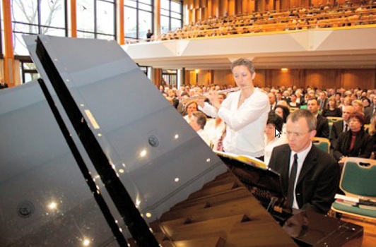 Feierlicher Karfreitagsgottesdienst mit Bezirksapostel Michael Ehrich (Foto: privat)(bro) (jd) Heute war die Stadthalle Eberbach wieder einmal für einen Tag lang eine Kirche: Die neuapostolischen Christen aus der Region feierten ihren Karfreitagsgottesdienst mit ihrem höchsten Geistlichen für Baden-Württemberg und Bayern, Bezirksapostel Michael Ehrich.
