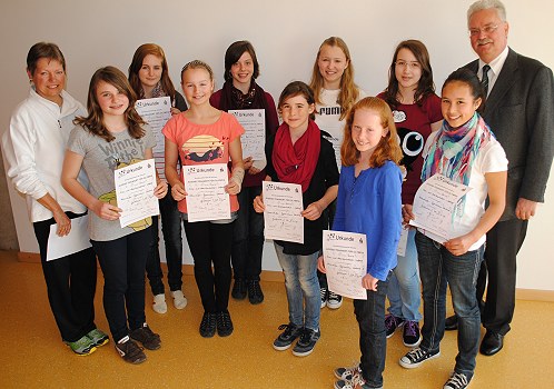 Diesmal starteten Jana Konrad, Leah Draxler, Annabelle Gebhard, Lea Wierz und Katrin Wohlers in der ersten Mannschaft sowie Alena Klotz, Hannah Bischof, Michelle Ihrig, Corinna Lück und Marie Meder in der zweiten Mannschaft. Betreut wurden sie dabei von ihrer Sportlehrerin Hiltrud Martin-Wolf.
