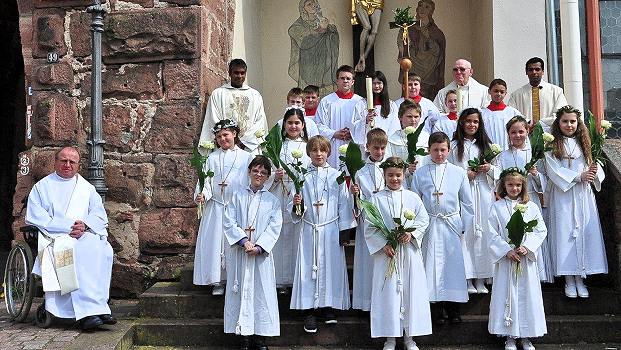 Zwölf Kinder empfingen zum ersten Mal die Heilige Kommunion (Foto: privat)(bro) (hn) Am Weißen Sonntag durften zwölf Kinder zum ersten Mal die Heilige Kommunion empfangen. Das Thema der Vorbereitungszeit hieß „Wir sind alle mit Jesus in einem Boot.“ Pater Cyril erzählte, dass Jesus das Boot lenkt und Halt und Sicherheit gibt. Auch wenn die Kinder nun das Boot verlassen, bleibt Jesus bei ihnen und reicht ihnen immer die Hand.