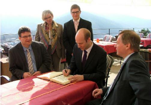 Staatssekretär verewigte sich im Gästebuch der Stadt (Foto: privat)(bro) (hn) Auf Einladung des Landtagsabgeordneten Peter Stephan und des CDU-Stadtverbandes Hirschhorn besuchte kürzlich Ingmar Jung, Staatssekretär im Hessischen Ministerium für Wissenschaft und Kunst, die Stadt Hirschhorn.