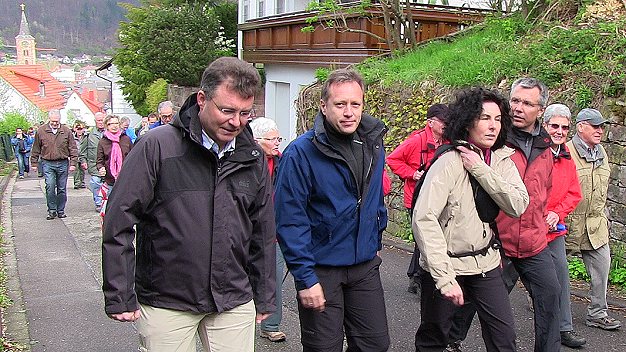 Mit dabei waren neben Eberbachs Bürgermeister Bernhard Martin und dem Ideengeber für den Neckarsteig, Top-Triathlet Timo Bracht, auch die Landräte Stefan Dallinger (Rhein-Neckar-Kreis) und Dr. Achim Brötel (Neckar-Odenwald-Kreis), zahlreiche weitere Bürgermeister sowie der Verbandsdirektor der Metropolregion Rhein-Neckar, Ralph Schlusche.