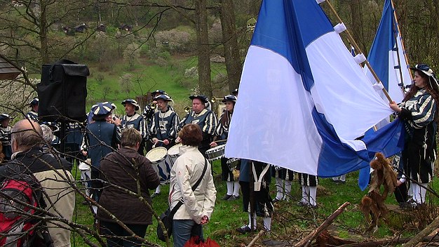 Mehr als 200 Wanderfreunde fanden sich am Vormittag auf dem Thononplatz am Pulverturm ein, um gemeinsam auf den Schollerbuckel zu marschieren, wo zu den Klängen des Eberbacher Fanfarenzugs das symbolische Band zur Eröffnung des neuen Wanderwegs durchschnitten wurde. Zuvor wurde die neue Einrichtung durch den evangelischen Pfarrer Ekkehard Leytz und den katholischen Diakon Joachim Szendzielorz gesegnet.