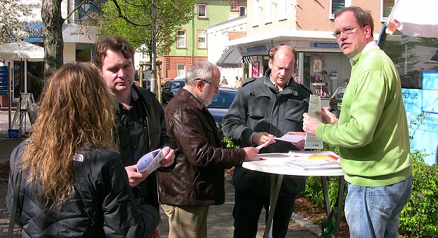 Seine politischen Gegner sehen das anders: Die CDU war gestern mit einem Infostand in Eberbach am Lindenplatz vertreten und verteilte Flugblätter gegen die Polizeireform, die ihrer Ansicht nach einen Rückzug der Polizei aus der Fläche und insbesondere aus dem ländlichen Raum bedeute (unser Bild).