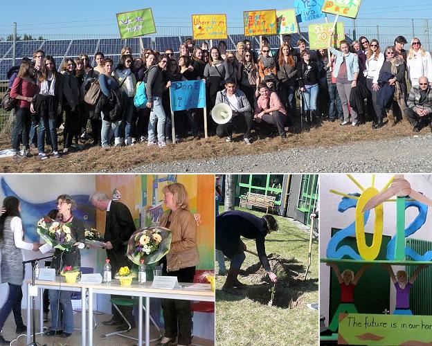 Nach der erfolgreichen Klimakonferenz wurde als Zeichen der Hoffnung auf wachsendes Umweltbewusstsein eine Pinie aus Venedig vor dem Schulgebäude gepflanzt. Anschließend machte sich das Comenius-Team gefolgt von weiteren Oberzent-Schülern in einem Demonstrationszug für Umwelt- und Klimaschutz auf den Weg zum Solarpark in Beerfelden, flankiert von zwei Polizeiwagen. Am Solarpark wurde die vom deutschen Comenius-Team gestaltete Informationssäule der Anlage eingeweiht und ein polnischer Apfelbaum gepflanzt.