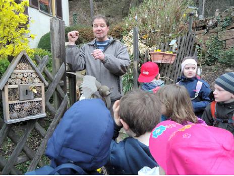 Mit sauberer Zielsetzung ging es dann auf die letzten Schultage vor den Osterferien zu. Im Kunstunterricht fertigten die Kinder ihre eigenen Osterkörbchen. Sie bekamen nicht mit, dass diese wenige Tage später verschwunden waren, denn voller Freude fieberten sie ihrem ersten Wandertag entgegen. Während der Wanderung betrachteten die Kinder an einer großen Schautafel die geschützten Tieren unserer Heimat. Auch für ein Insektenhotel interessierten sie sich sehr, und zur großen Überraschung fanden sie im Wald ihre gebastelten Nester, die österlich gefüllt waren.