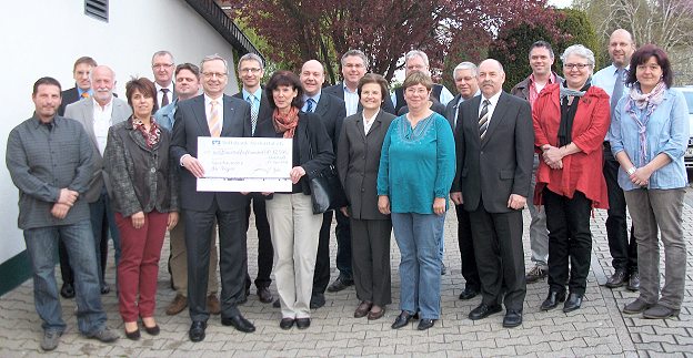 Volksbank Neckartal spendete 12.500 Euro (Foto: privat)(bro) (kb) Viele der im Geschäftsgebiet der Volksbank Neckartal eG ansässigen Gewerbevereine hatten dieser Tage einen Grund zum Feiern. Die Volksbank Neckartal eG hatte zur symbolischen Scheckübergabe eingeladen. Für vielfältige Aktionen und Anschaffungen wurde ein symbolischer Scheck über 12.500 Euro an die Gewerbevereine übergeben.