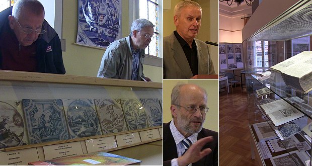 Bei der heutigen Eröffnung der Doppelausstellung begrüßten Dekan Ekkehard Leytz und Eberbachs Bürgermeister Bernhard Martin die Gäste in der Michaelskirche. Kurt Perrey vom Bibelfliesenteam aus Norden und Prof. Reinhard Stupperich vom Eberbacher Museumsverein führten in die Thematik der Ausstellungen ein. Mit barocker Musik bereicherten Achim Plagge (Klavier), Stefanie Bartsch (Oboe) und Elke Kleinert-Endlich (Blockflöte) das Programm, das nach einem kurzen Fußweg von der Kirche zum Museum mit einem Stehempfang ausklang.