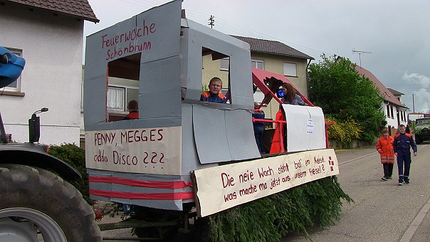 (hr) Im Schönbrunner Ortsteil Schwanheim wird an diesem Wochenende Kerwe gefeiert. Heute Nachmittag gab es einen bunten Kerweumzug.