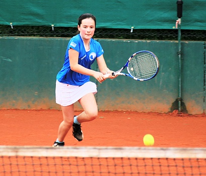 Vielversprechender Medenrundenstart der Eberbacher Tennisjugend Mara Schmitt von den Juniorinnen U12. (Foto: privat)(bro) (sch) Die Jugend U10 spielte mit einer gemischten Mannschaft und besiegte ihre Gegner vom TC St. Ilgen klar und ohne Satz- und Spielverlust mit 14:0. Ebenfalls ohne Satzverlust ließen die Junioren U12 ihren Gegnern vom TC Neckarelz mit 6:0 ( aus vier Einzeln und zwei Doppeln) keine Chance. Ersatzgeschwächt mussten dagegen die Juniorinnen U12 gegen TC Waldpark Mannheim eine glatte 0:6-Niederlage einstecken. Bei den Juniorinnen U14 gewannen die beiden erst 11-jährigen Charlotte Schalich und Sara Sauermann ihre Einzel zum 2:2-Zwischenstand. Das Team musste jedoch beide Doppel zum 2:4-Endstand abgeben. Mit einem ausgeglichenen 3:3 kamen die Junioren U 6 aus Neckargemünd zurück. Erfolgreich waren dagegen die Juniorinnen U16 beim TSV Pfaffengrund mit 5:1.