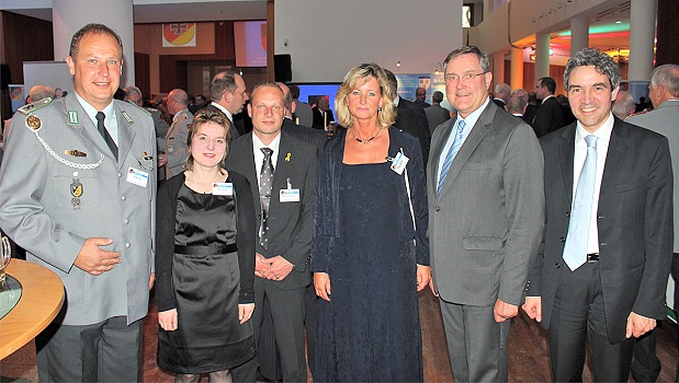 Parlamentarischer Abend mit dem Bundesverteidigungsminister Rudi Joho (1.v.l.), Sascha Heckmann (3.v.l.), Dr. Franz Josef Jung MdB (ehemaliger Bundesminister der Verteidigung) und Dr. Stephan Harbarth MdB. (Foto: privat)(bro) (mb) Ein ganz herausragender Aktivposten innerhalb des Verbandes der Reservisten der Deutschen Bundeswehr e. V. ist die Reservistenkameradschaft Eberbach, die im März aufgrund ihres hohen Engagements vom Landesvorstand des baden-württembergischen Reservistenverbandes zur "Reservistenkameradschaft des Jahres 2011" gewählt wurde.