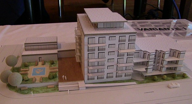 Bezahlbare Mieten nur bei Abriss und Neubau - Entscheidung soll im Juni fallen Modell der Sanierungsvariante Körkel. (Foto: Hubert Richter)Mehr Bilder (Klicken zum Vergrößern):