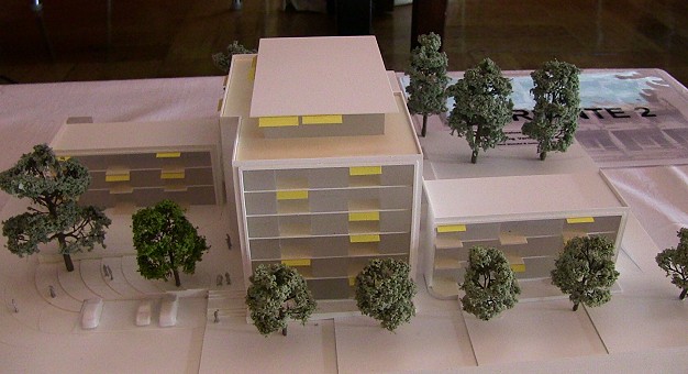 Bezahlbare Mieten nur bei Abriss und Neubau - Entscheidung soll im Juni fallen Modell der Sanierungsvariante Weindel. (Foto: Hubert Richter)Mehr Bilder (Klicken zum Vergrößern):