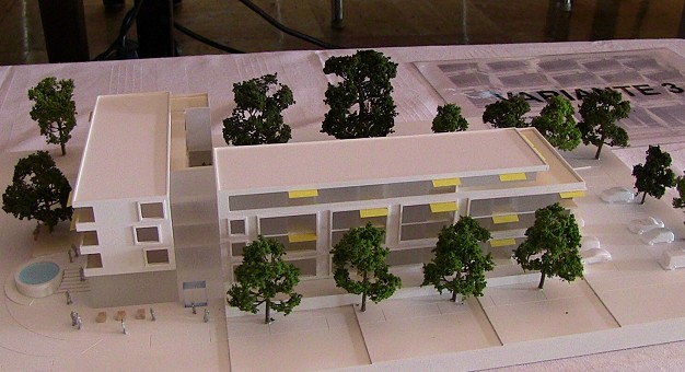Bezahlbare Mieten nur bei Abriss und Neubau - Entscheidung soll im Juni fallen Modell der Neubauvariante Weindel. (Foto: Hubert Richter)Mehr Bilder (Klicken zum Vergrößern):