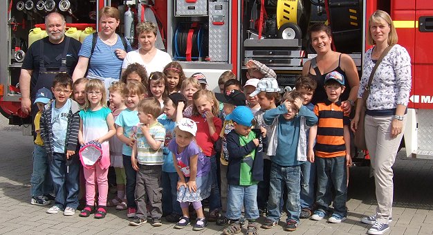Ein hochinteressantes Erlebnis (Foto: privat)(bro) (isch) Einen spannenden Tag bei der Eberbacher Feuerwehr verbrachten kürzlich zwei Gruppen des evangelischen Kindergartens Regenbogen.