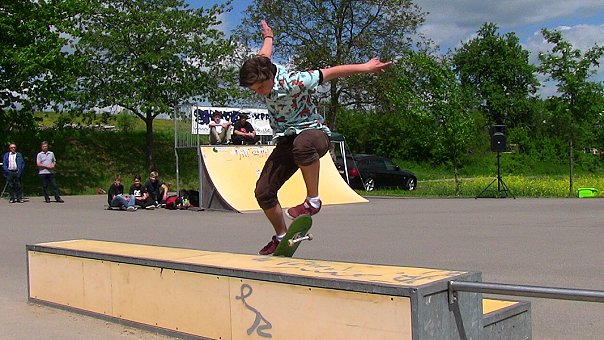 Danach waren schließlich die Skater der Gruppe A (ab 16 Jahre) mit ihren Kürläufen am Start. Als Besten ermittelte die Jury Mike Griggs aus Heidelberg. Zweiter wurde Robin Düsterwald aus Seckach, und auf Platz drei kam Luca Sylan aus Neckarsteinach. In der B-Gruppe siegte der Heidelberger Boran Frank vor Lennart Schneller (Eberbach) und Yannick Walz (Hirschhorn). Die Bewirtung hatte wieder der AKA organisiert.