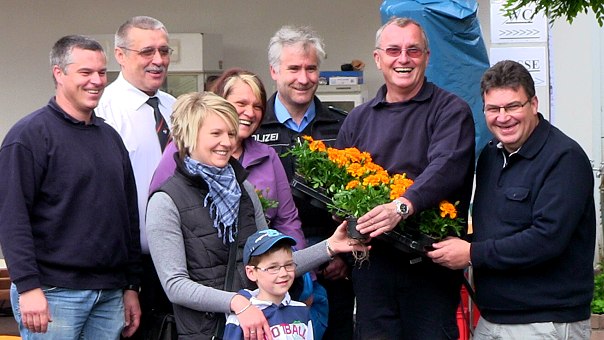 Weil heute auch Muttertag ist, verteilten die Feuerwehrleute Blumenpräsente an die anwesenden Mütter.