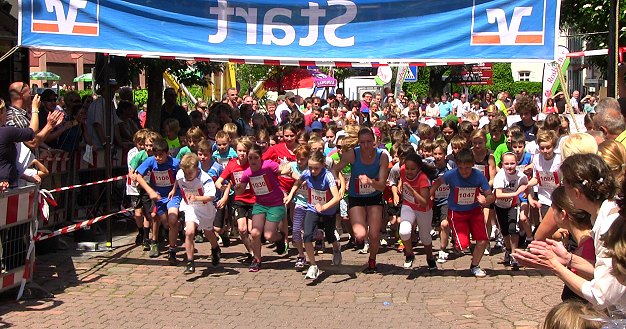 Eberbacherin Zweitschnellste im Halbmarathon 452 der 791 Läufer waren Kinder und Jugendliche. Hier der Start zum Bambini-Lauf der 10- und 11-Jährigen. (Foto: Hubert Richter)Mehr Bilder (Klicken zum Vergrößern):