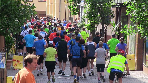 Angeboten wurde auch ein Mini-Marathon über 4,2 Kilometer (sechs Runden durch die Altstadt). Hier waren Kevin Schwing der schnellste Mann und Nathalie Vay die schnellste Dame.