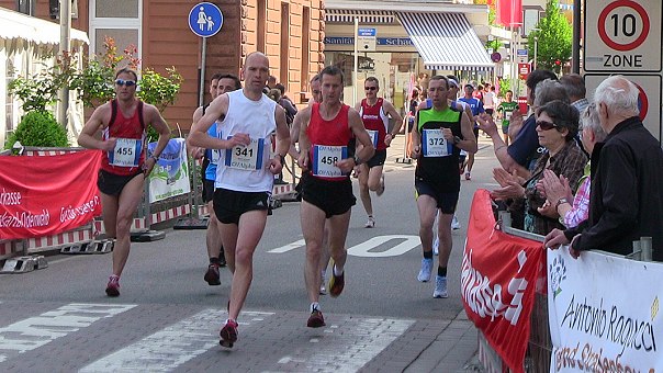 Angeboten wurde auch ein Mini-Marathon über 4,2 Kilometer (sechs Runden durch die Altstadt). Hier waren Kevin Schwing der schnellste Mann und Nathalie Vay die schnellste Dame.