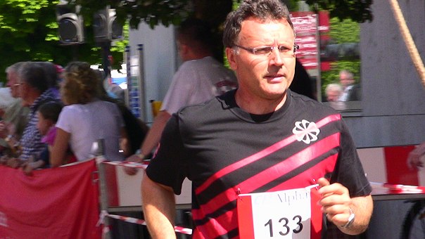 Zum Startbild (hr) Maciek Miereczki vom FV Citylauf Erftstadt hat heute bei sonnigem und heißem Wetter den Halbmarathon beim 8. CH-Alpha-Frühlingslauf in Eberbach gewonnen.