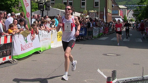 Zum Startbild (hr) Maciek Miereczki vom FV Citylauf Erftstadt hat heute bei sonnigem und heißem Wetter den Halbmarathon beim 8. CH-Alpha-Frühlingslauf in Eberbach gewonnen.