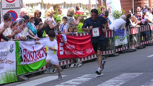 Angeboten wurde auch ein Mini-Marathon über 4,2 Kilometer (sechs Runden durch die Altstadt). Hier waren Kevin Schwing der schnellste Mann und Nathalie Vay die schnellste Dame.