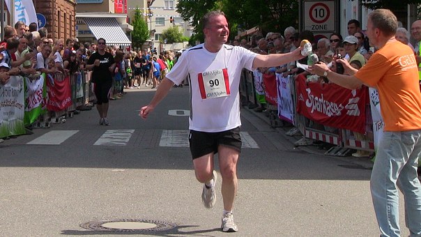 Angeboten wurde auch ein Mini-Marathon über 4,2 Kilometer (sechs Runden durch die Altstadt). Hier waren Kevin Schwing der schnellste Mann und Nathalie Vay die schnellste Dame.