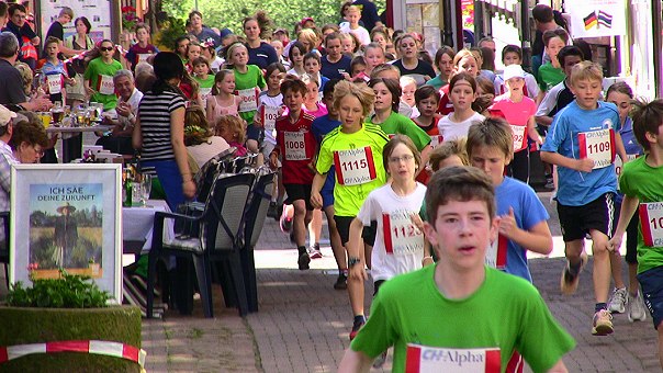 Angeboten wurde auch ein Mini-Marathon über 4,2 Kilometer (sechs Runden durch die Altstadt). Hier waren Kevin Schwing der schnellste Mann und Nathalie Vay die schnellste Dame.