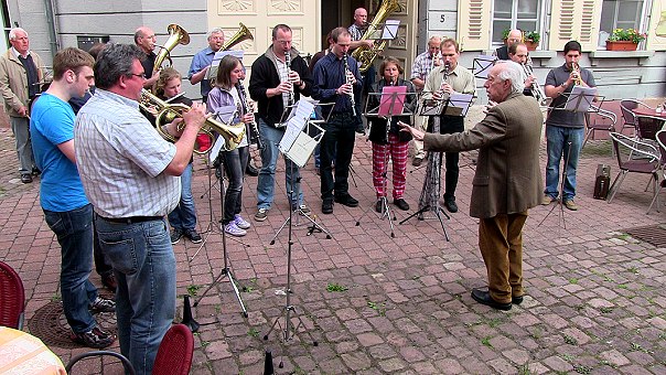 Festmarathon für Partyfans und Halbmarathon für Sportsfreunde Die katholische Pfarrkapelle spielte am Freitagabend zum Frühlingsliedersingen auf dem Alten Markt. (Foto: Hubert Richter)Mehr Bilder (Klicken zum Vergrößern):