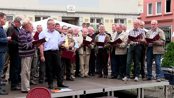 Festmarathon für Partyfans und Halbmarathon für Sportsfreunde Frühlingsliedersingen am Freitagabend mit MGV Concordia Neckarwimmersbach und MGV Sängerlust Rockenau auf dem Alten Markt. (Foto: Hubert Richter)Mehr Bilder (Klicken zum Vergrößern):