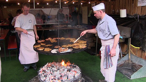 Festmarathon für Partyfans und Halbmarathon für Sportsfreunde Deftiges vom Schwenkgrill beim Budokai Asahi e.V. im Hof der Dr.-Weiß-Schule. (Foto: Hubert Richter)Mehr Bilder (Klicken zum Vergrößern):