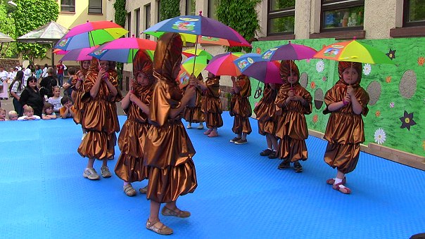 Festmarathon für Partyfans und Halbmarathon für Sportsfreunde Die "Kuckuckseier" der KG Kuckuck als Regenwürmer am Samstagnachmittag im Hof der Dr.-Weiß-Schule. (Foto: Hubert Richter)Mehr Bilder (Klicken zum Vergrößern):