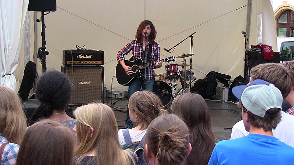Festmarathon für Partyfans und Halbmarathon für Sportsfreunde Singer/Songwriterin Sarah Abassi am Samstagabend auf dem Lindenplatz. (Foto: Hubert Richter)Mehr Bilder (Klicken zum Vergrößern):